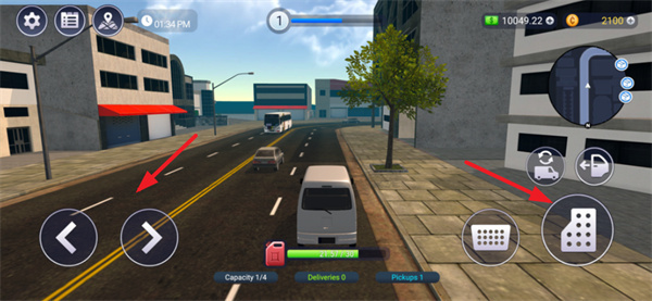 2、接着驾驶卡车行进,左边的两个按键用来操控车辆的左右移动,右边的按键则分别对应刹车和油门功能。