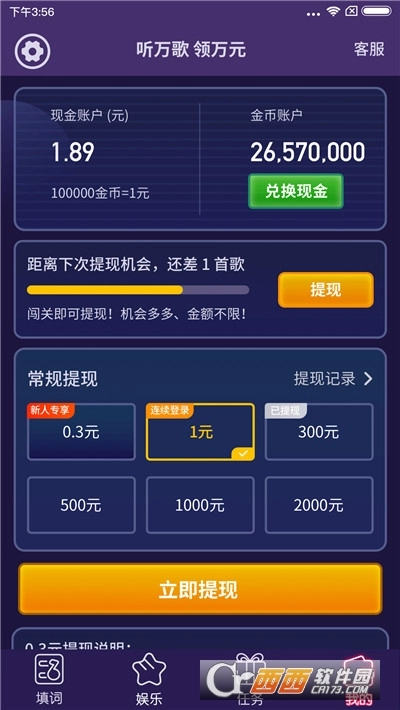 2、这款游戏颇具挑战性。每日挑战环节支持玩家自主答题,红包采用先到先得的机制,且发放数量十分可观。