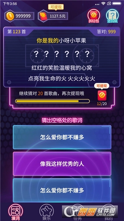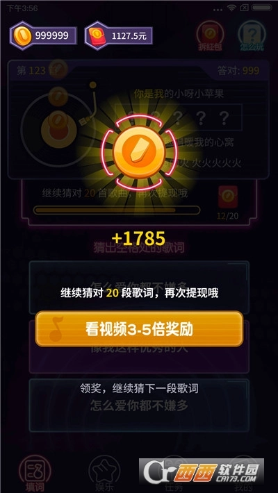 3、游戏会播放歌曲的前奏部分,玩家需要根据听到的内容猜出对应的歌曲并回答问题,只要答对就能获得红包奖励,从而顺利闯过该关卡。