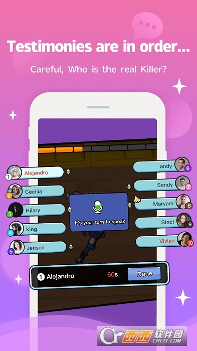 还支持语音组队的功能,要是你扮演杀手的角色,就得懂得如何隐藏自身身份,想办法把其他玩家的注意力引到别人那里去。