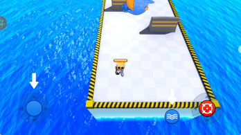 1、移动摇杆可操控角色进行移动,攻击摇杆能够释放颜料弹幕,潜水摇杆则用于触发蓝色区域的加速与回血效果。