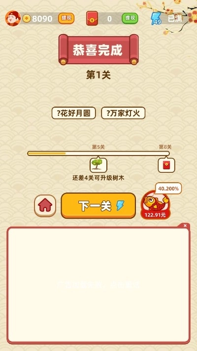 2、把所有的成语都完整连接起来,顺利通过挑战,就能获得更多积分和元宝。