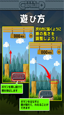 用手指按住屏幕就能生成一块横板,把它架在两个木桩之间,让火柴人从上面通过。要注意控制木板的长度,别让火柴人掉下去了哦。