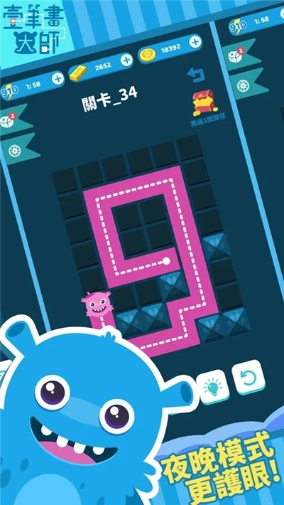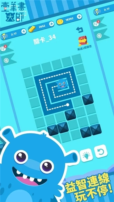 一笔画大师是一款趣味十足的益智闯关游戏,整体画风清新,玩法休闲又有趣。在游戏里,玩家只需拖动蓝蓝,画出一条连续不断的线,将迷宫的所有格子都覆盖就能通关。游戏准备了上百个益智关卡供你挑战,还有多种不同的线路连接方式,快来尽情发挥吧。