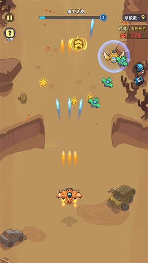 3、正式进入游戏后,通过滑动屏幕能够操控战机移动,战机会自动发起攻击,一旦子弹命中敌人,就会对其造成伤害。