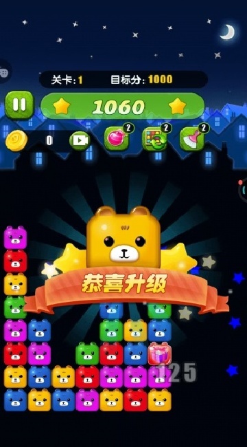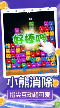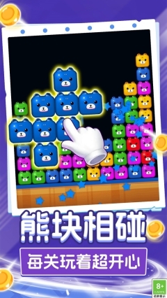 1、操作方式为单指轻触屏幕,玩家通过这一简单动作就能操控小熊方块移动并完成消除。游戏规则清晰明了,无论是哪个年龄段的玩家都能轻松理解,快速掌握玩法。