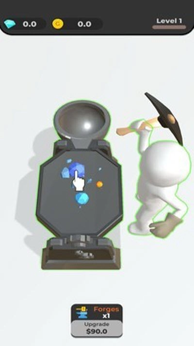 持续点击屏幕,让更多金属熔化成炽热的铁水,用来打造各式各样锋利无比的武器,一步步成长为锻造大师。