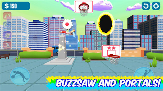 2、篮球框的位置并非固定不变,玩家需要灵活把控自身的弹跳力,以此完成腾空扣篮的动作。
