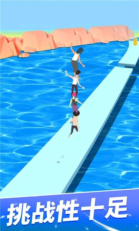 玩家在游戏中需要操控不同角色进行叠罗汉,每个人踩着下方的人层层堆叠。过程中要精准把握跳跃时机,维持平衡,尽可能把罗汉塔叠得更高,不然就会被障碍物阻挡前进的道路!