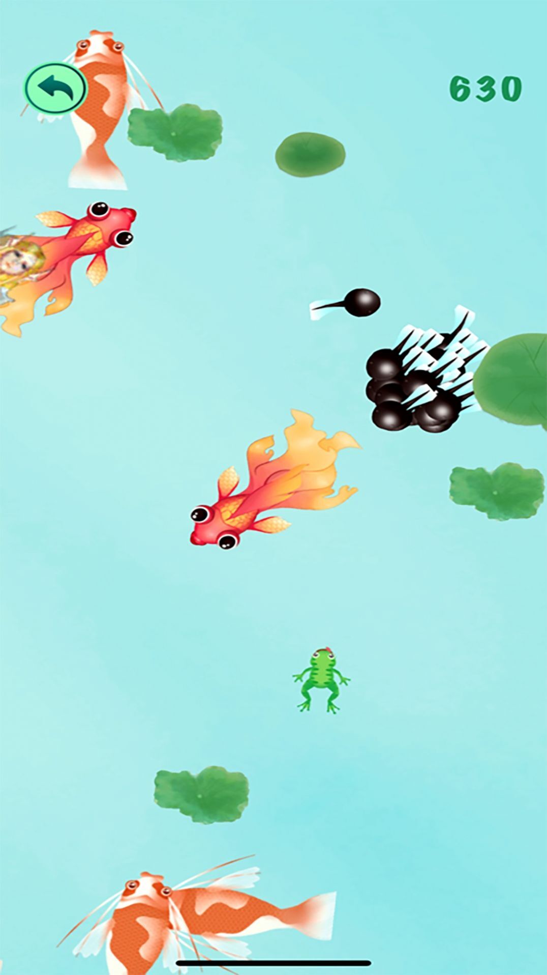 4、当小青蛙吞食小蝌蚪后,它的身旁便会新出现一只小蝌蚪。