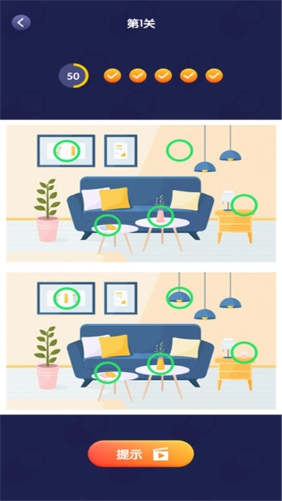 这是一款经典又好玩的找不同游戏,快来锻炼脑力,开始寻找那些不同之处吧!相信你一定能找出关卡里所有的不同——每个关卡固定有五个不同的位置,所以只要尽全力找到这五个区域,就能完成关卡挑战。锻炼眼力很关键,坚持下去,你未来一定能成为一名超厉害的找不同高手!