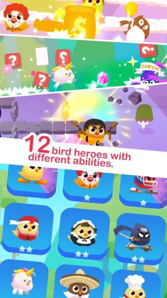 2. 操作便捷:游戏的操作方式简单易懂,玩家仅需借助点击、滑动这类基础操作,就能轻松操控小黄鸡完成跳跃、滑行等一系列动作。