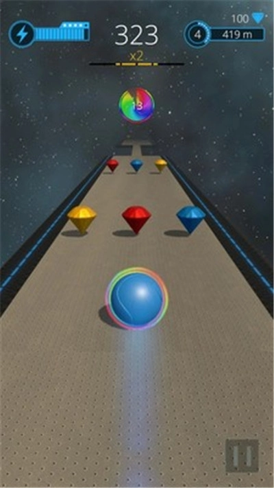 滚球宝石是一款休闲游戏,玩法是通过滚动球体去撞击宝石。游玩时要留意自己球体的颜色,绝对不能撞到其他颜色的小球。点击屏幕就能让小球快速移动,左右移动还能用来躲避障碍物。