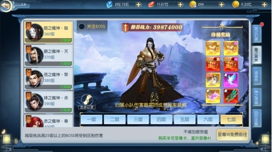 极品装备可通过挑战首领获取,层数越高的首领掉落的装备宝箱品质越优,有概率获得红色、高阶装备,从而大幅提升战力。玩家可自主选择挑战的首领目标,挑选契合自身需求的挑战对象,能让每日收益达到最大化。此外,提升战力水平或充值至尊会员,将拥有更多获取心仪装备的机会。