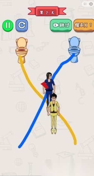 2.碰到路线交错的情况也不用紧张,一定要保证相同颜色的角色对应相同颜色的厕所,要是连错了就没法完成任务啦。