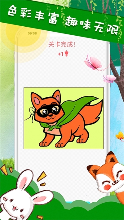 这是一款专为孩子打造的看图填色游戏,玩法简单,借助对应的数字提示,点击就能完成涂色,图片便会变得生动逼真!