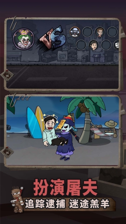2、踏入神秘场景,既可以选择化身屠夫追捕猎物,也能在绝境中挣扎求生、玩躲猫猫,体验不同身份带来的别样乐趣。