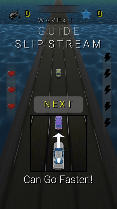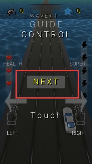 2、玩家需触摸屏幕左右区域以操控车辆移动,点击“NEXT”按钮即可进入游戏的下一个环节或步骤。