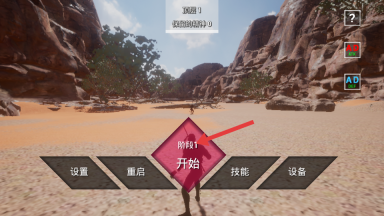 1、点击阶段1的开始按钮,即可进入战斗训练的第一阶段,玩家将开启战斗挑战,并准备在沙漠场景中开展战斗训练。