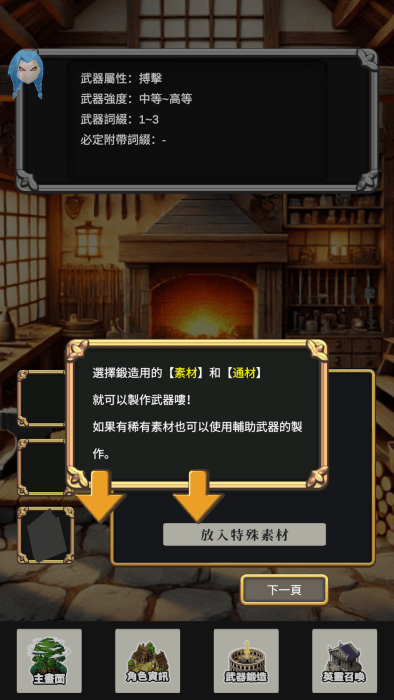 我们先到武器锻造界面制作自己的武器吧。