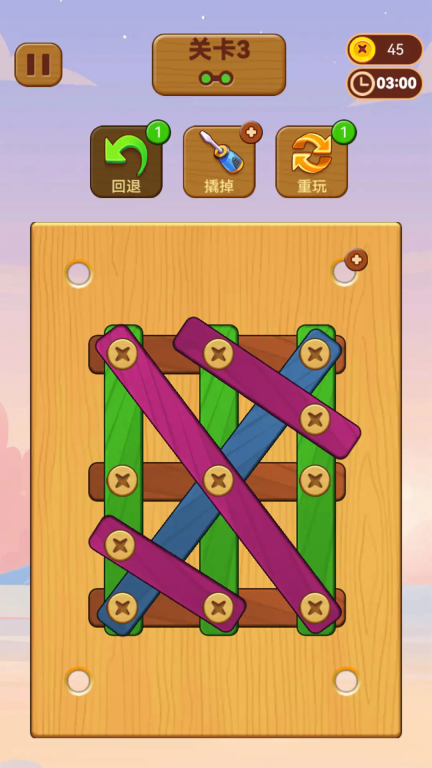 打螺丝钉儿是一款趣味十足的闯关游戏,玩家得按合理顺序敲击螺丝钉,把木板牢牢固定好,以此完成关卡挑战。游戏配备了出色的音效,每次敲击都会响起悦耳的声音,让玩家沉浸在解谜的乐趣里。要是你也是休闲游戏爱好者,这款游戏可千万别错过!