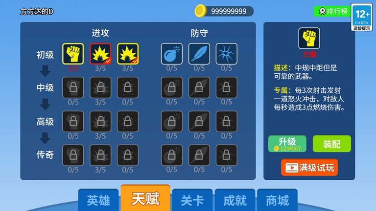 3、进入关卡1的战斗场景后,操控角色进行移动,使用武器射击绿色敌人,同时躲避敌方攻击,收集场景内的绿色道具,坚持到时间结束或者消灭所有敌人即可完成挑战。