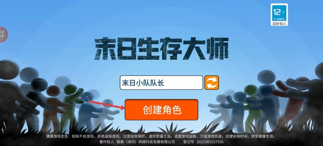 1、进入佳作后,输入角色名称“末日小队队长”,点击创建角色按钮,完成角色创建操作,随后进入佳作主界面。