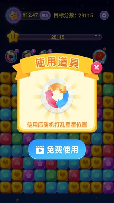 2、丰富多样的关卡等待挑战,玩家可收集各类实用道具,不仅能增加步数,还能直接对横纵列进行调整;
