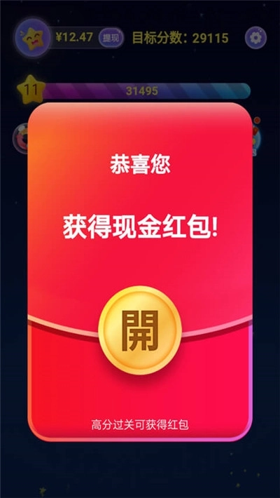 3、绚烂的游戏特效铺满整个屏幕,关卡任务更加丰富多样,每完成一次都能领取红包奖励。