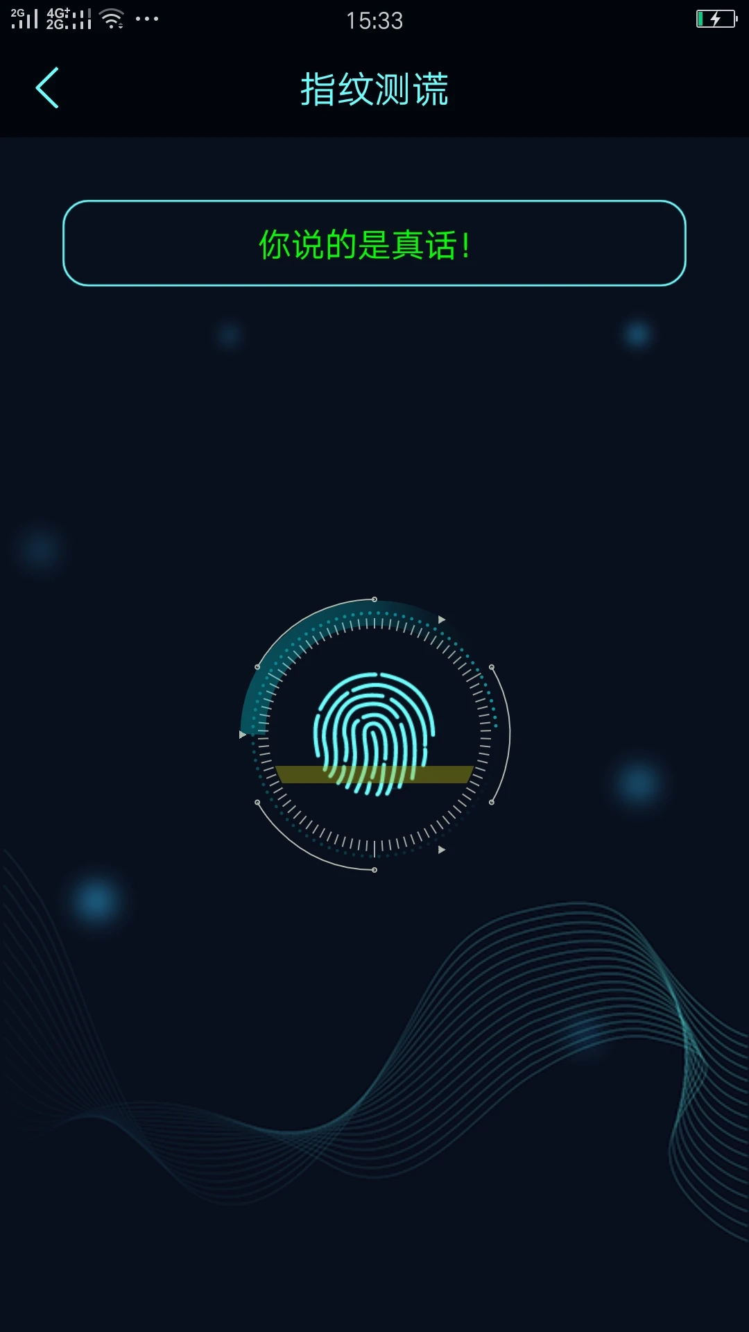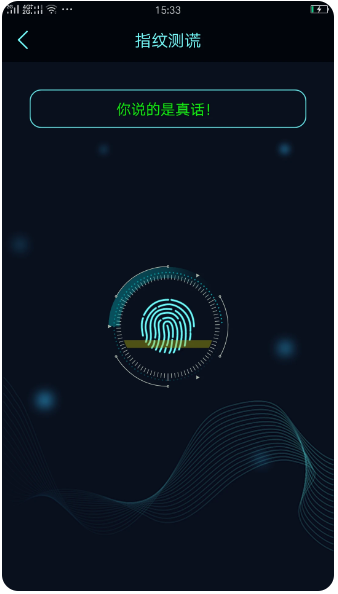 1、模拟指纹测谎与扫描功能,可给出娱乐性质的谎言或真话判定。