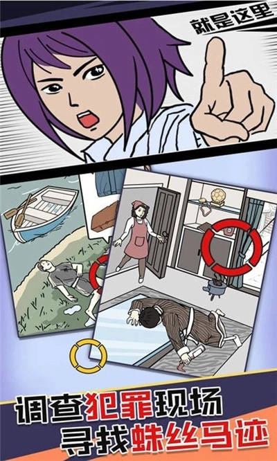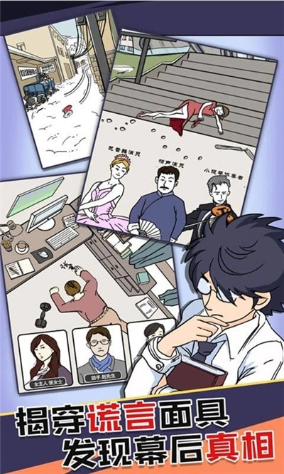 3. 简约漫画风格搭配步步紧逼的音乐,加上环环相扣的剧情,构建出细节丰富的侦探世界,诚邀各位名侦探前来体验。2020全网最高难度侦探探案类解谜游戏,快和名侦探一起组团破案,揭穿犯人的谎言面具,探索犯罪现场的真实情况,凶手竟然是他! 游戏玩法:游戏开始选择案件,让我们和名侦探一起开始侦查案现场的谜题。根据案发现场的系统提问找到破案的线索,再针对线索一步步的对案件抽丝剥茧,分析验证还原案情,推演案发经过,最终还原事件真相并找到真正的凶手。