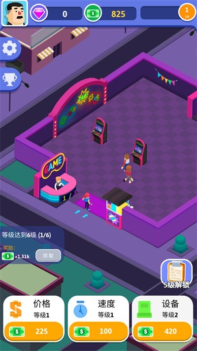 《街机大亨发家史》是一款竖屏放置类模拟经营游戏。在游戏中,你将化身为街机厅的经营者,从一间狭小的铺面开始创业之路。你可以购置格斗、赛车、抓娃娃等各类经典街机设备,通过优化店铺布局与装修风格、招募合适的员工、举办精彩的赛事活动以及开展多样化的营销推广,来吸引不同消费层次的顾客。随着事业的发展,你将逐步扩大经营规模,最终开设多家属于自己的连锁分店。