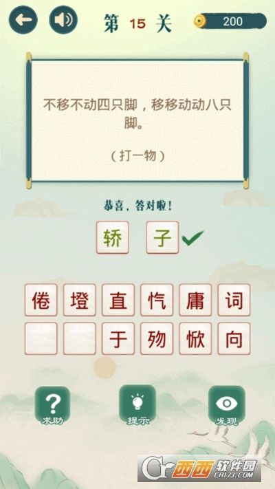这是一款不可挑战猜谜游戏支持手机安装的烧脑解谜闯关休闲小游戏,游戏中融入了大量词汇、成语设定的关卡供你挑战。在这里,玩家需要运用丰富的知识储备,才能更好地完成挑战,它还能帮助你了解自己究竟学了多少、记住了多少知识。