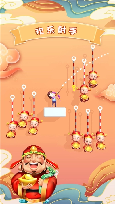 1、玩法简洁易上手,画风软萌可爱,快让我们化身弓箭手,拯救财神爷吧!