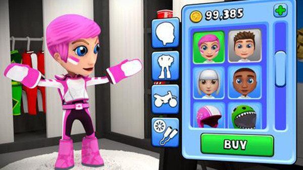 2、这里有多达20种样式各异、速度不同的自行车可供解锁使用。此外,你还能更换摩托车的车轮与排气筒,以此提升车辆的速度。