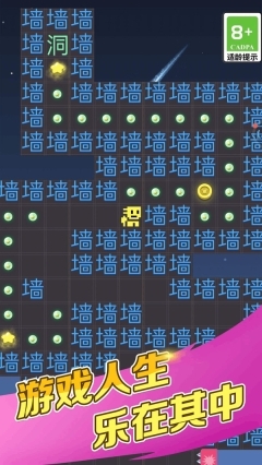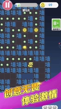 3、操控你的角色在墙字迷宫里收集星星、吃掉金币,顺利通关。