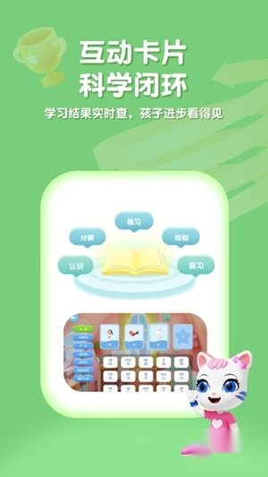 2、借助拼音卡片互动模块,系统会智能引导用户完成听说读写的全方位练习,从而营造沉浸式的学习体验。