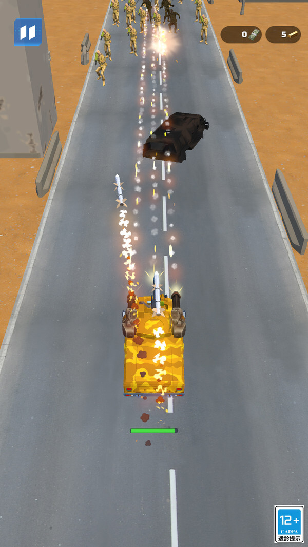 摧毁敌方车辆、士兵和障碍物,快速推进战场。