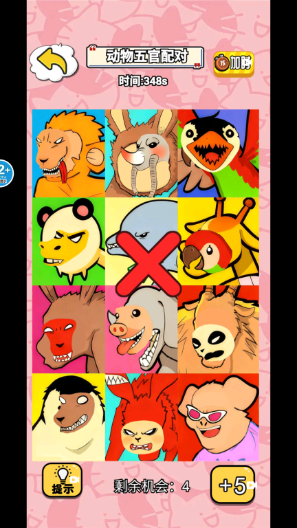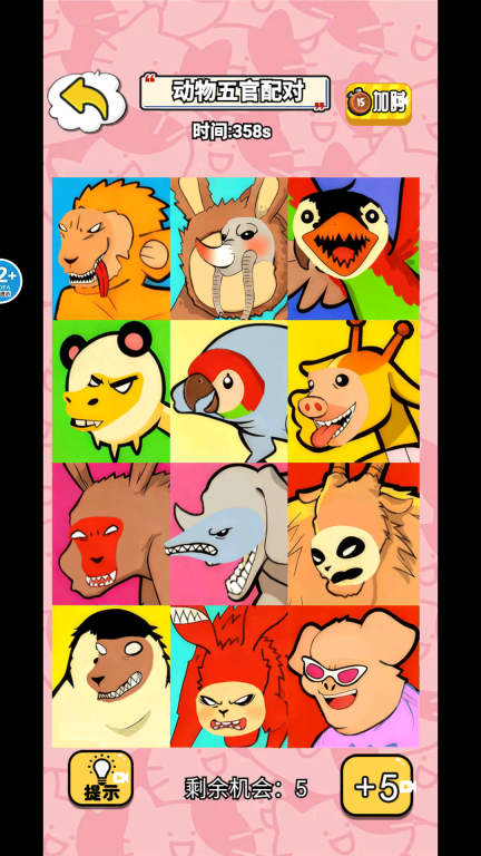 1、难度梯度遵循科学进阶逻辑,从最初的2种动物五官互换,逐步提升至5种动物的混排组合,既能让新手轻松上手,也能让老手持续获得富有挑战性的体验。