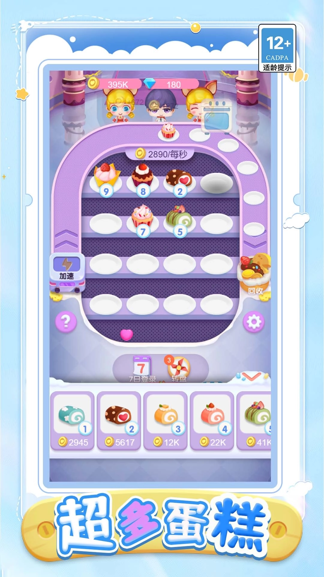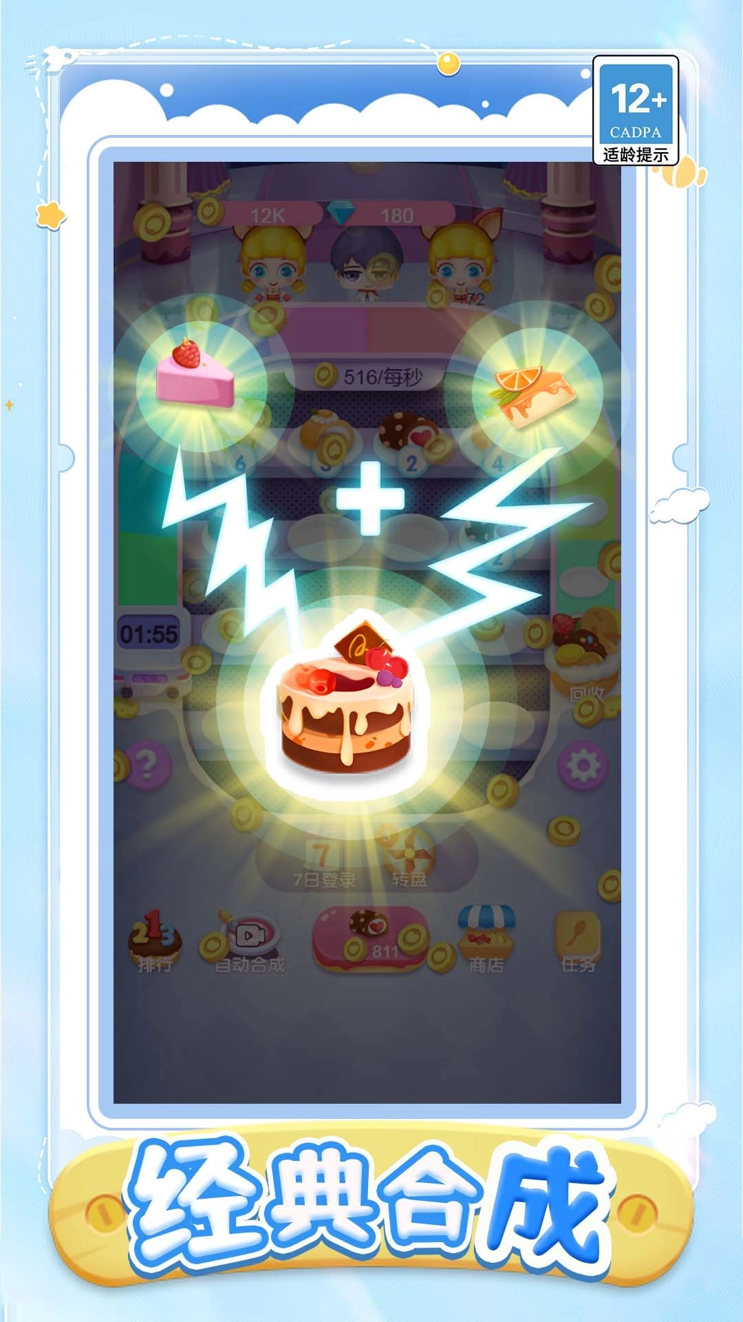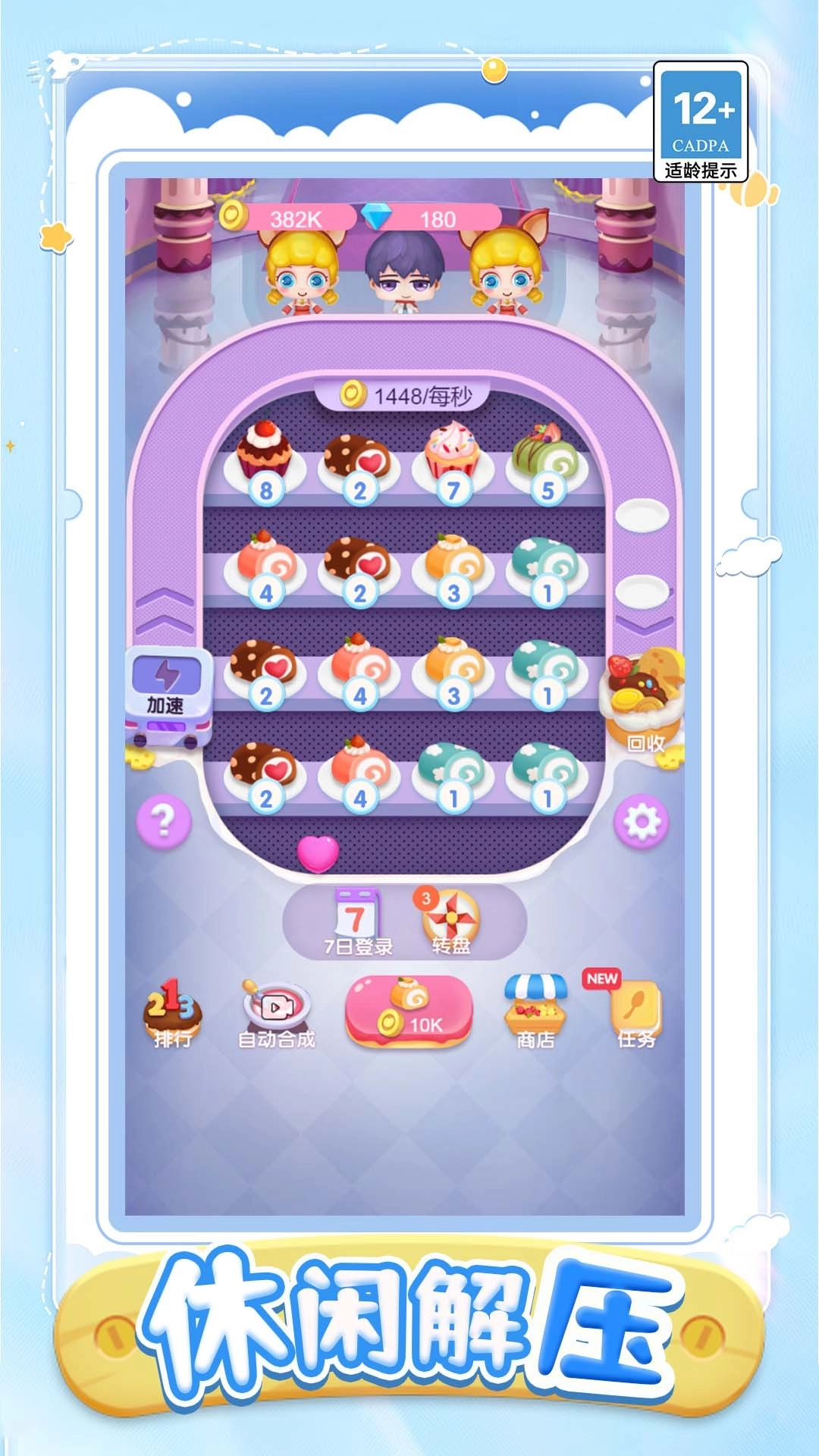凑甜变甜点游戏会给大家带来非常轻松且治愈的体验过程。你会有一个自己的蛋糕店,能够制作各种美味的蛋糕,将等级相同的蛋糕合成之后可以生成高一级的新蛋糕。当你店里的蛋糕种类越多的时候,小店每秒所产生的收益也会更多,能够给你带来更满足的快感。