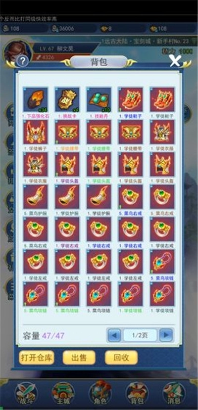 2、资源支持回收,所有通过挂机获取的装备都可以点击回收,以此兑换各类元宝。