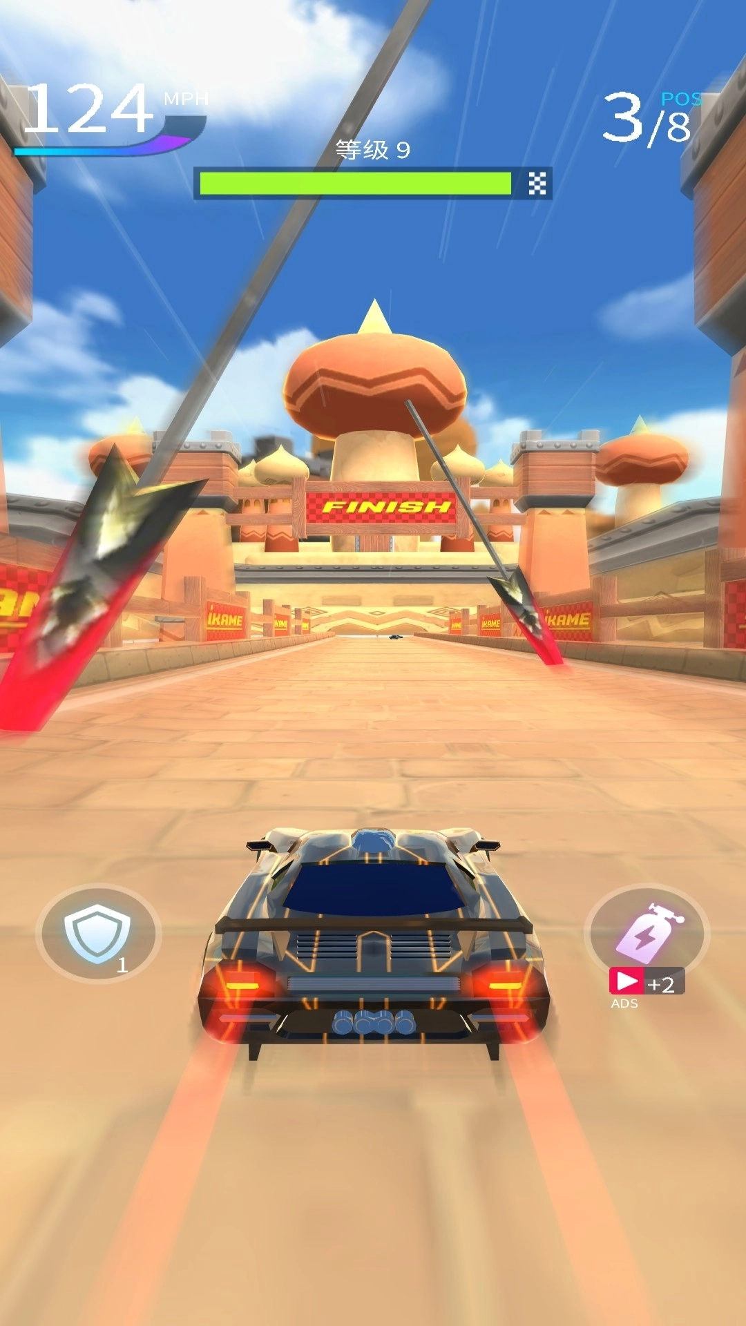1、主打赛车竞速,赛道设计多变,需要灵活操作才能完成挑战。