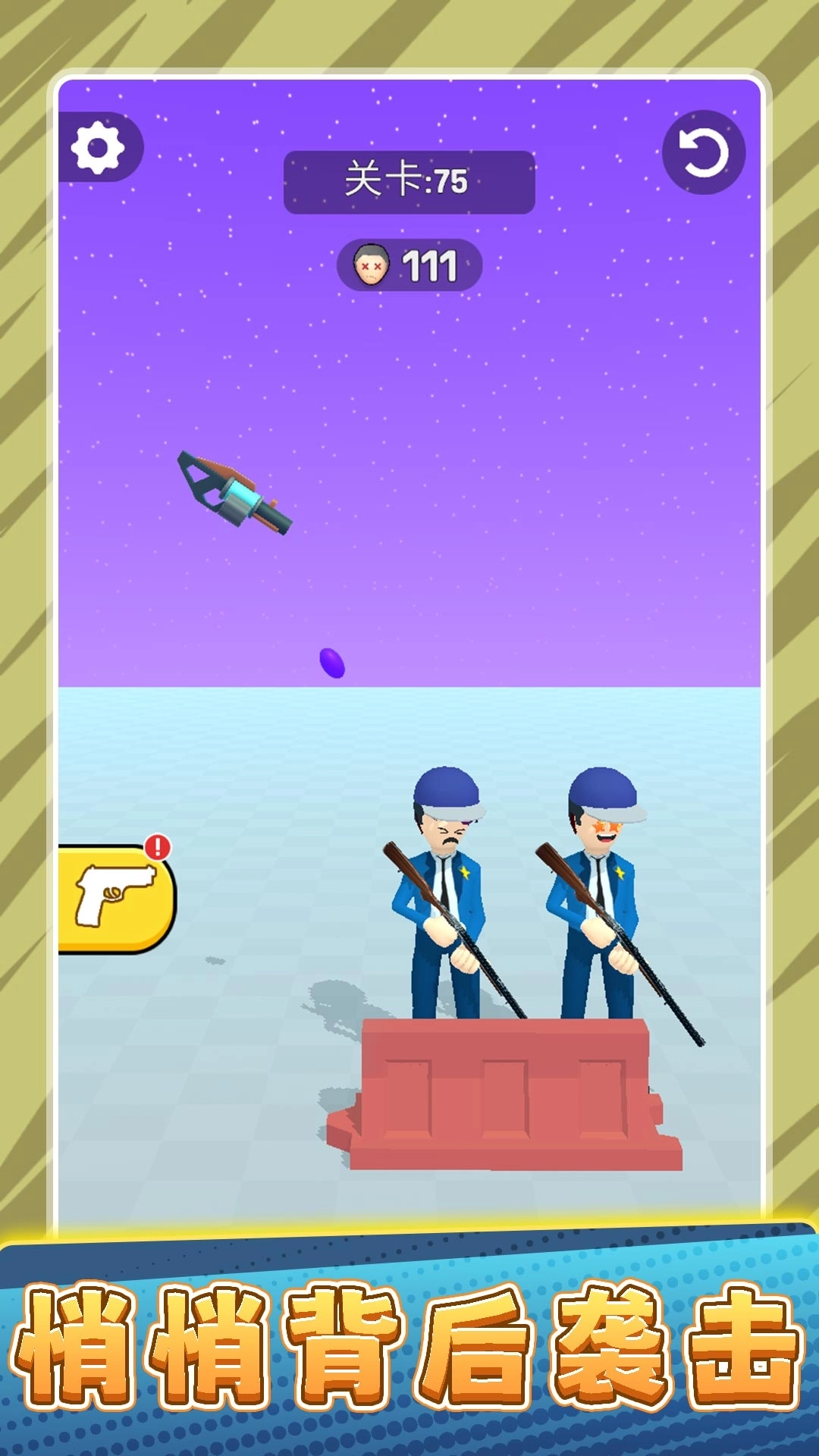 超级大冤种游戏里面的关卡任务一直在变化,第一个关卡需要玩家使用一颗子弹射杀两个敌人,第二个关卡就需要玩家用魔法手套将场景里面的石头击碎,后面的关卡还会出现很多新的要求,玩家要积极思考解决方式,才能继续挑战下去!