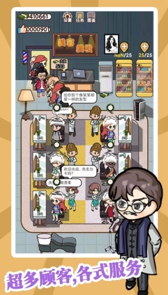 2、玩家可以从装潢、招聘、宣传等不同角度构建自己的理发店,游戏过程中。
