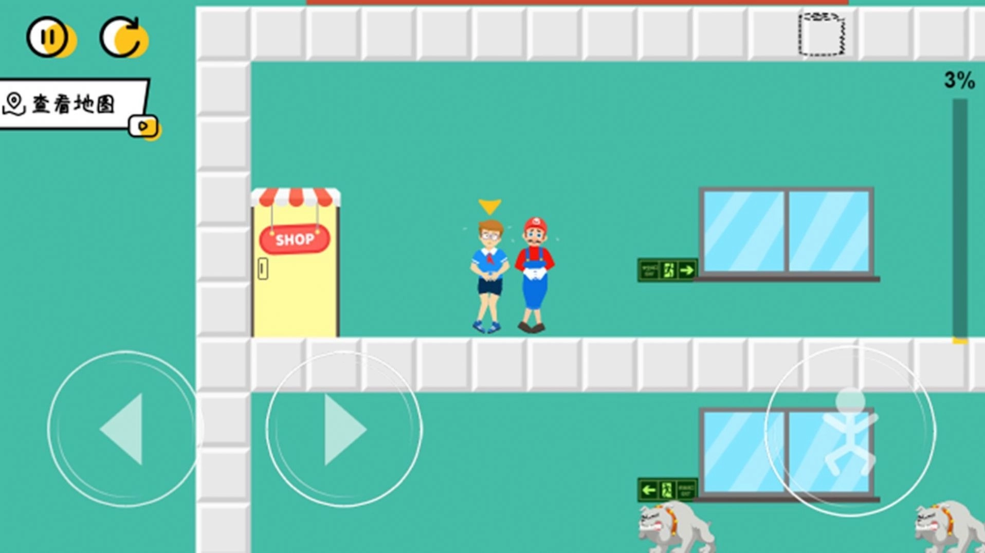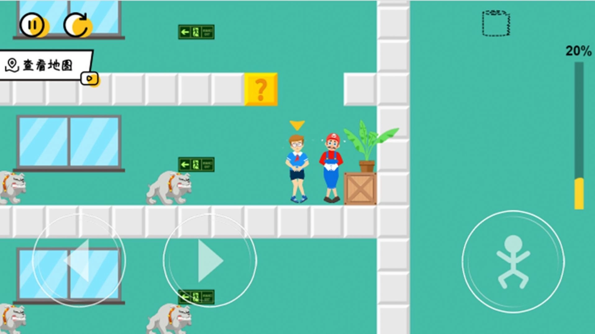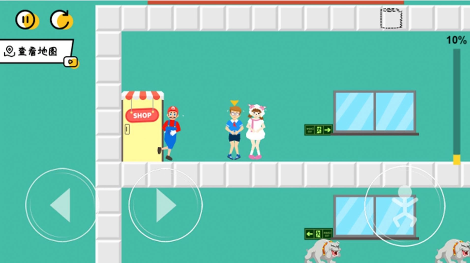 小心走错厕所游戏是一款轻松有趣的休闲闯关游戏,这款游戏有很多烧脑的关卡内容可以挑战,玩家们在关卡内可以和不同的目标进行互动,然后根据互动内容找出正确的厕所大门,如果一不小心走错了门,就会遇到一条凶狠的狗狗,它会毫不留情的扑向你哦!