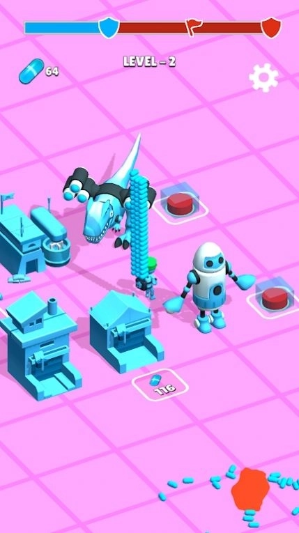 3、玩家可以把周围的塑料玩具化成蓝色胶囊,当做生产军事单位的原料。