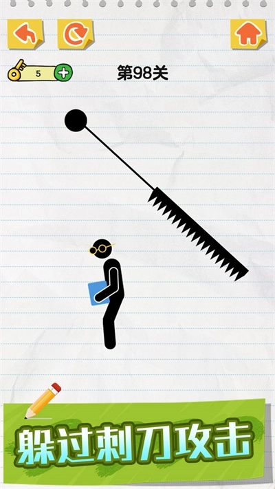 画线火柴人是一款益智烧脑的休闲闯关游戏,游戏以火柴人为主角,玩家需要帮助它通过重重关卡,在屏幕上通过画线的方式应对各种危险,关卡丰富多样,充满了创意,你可以发挥自己的想象力找到最合适的路线,还有道具可以使用,一起帮助火柴人通关吧。