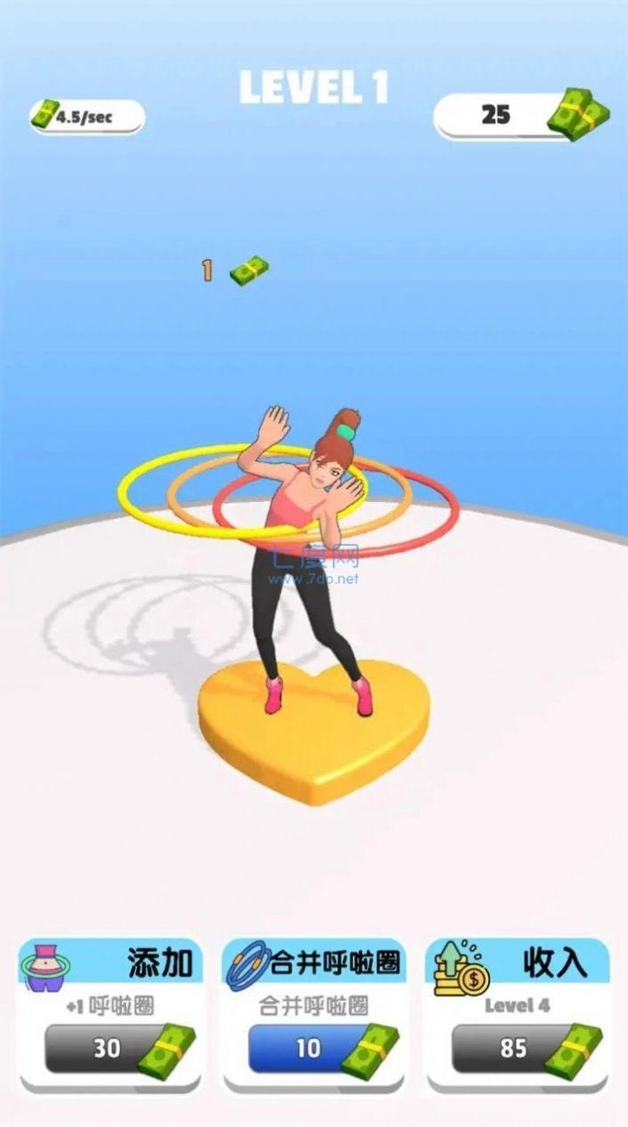 1、旋转呼啦圈并获得硬币。用获得的钱,您可以添加更多呼啦圈。