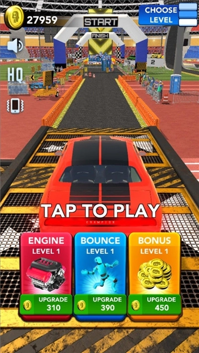 3、你的车飞得越高,能获取的道具和金币就越多,记得要把小人撞飞哦。