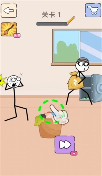 3.部分关卡要求玩家在绘制完成后点击开始按钮,观察火柴人按照预设路线行动的全过程并享受成功喜悦。